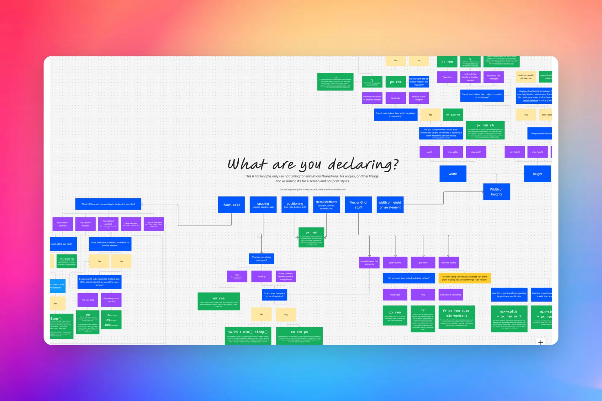 WhatUnit is a decision-making tool that helps you choose the most appropriate CSS length unit for your design scenario. It guides you through a step-by-step flow based on how you want your element to behaveβwhether it should scale with text, the viewport, or remain fixed. The result is a clear recommendation for using units like px, em, rem, %, vw, or vh. Itβs particularly useful for developers who want to improve their understanding of responsive design and create layouts that adapt better to different screen sizes.