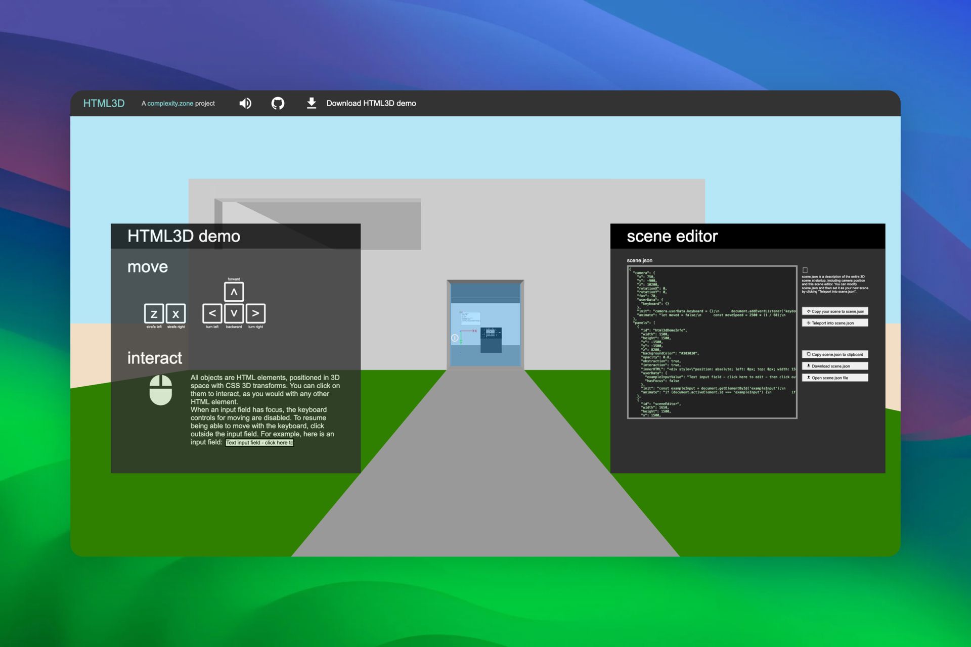 HTML3D is a visual builder for creating 3D experiences on the web using only HTML and CSS transforms. It lets you position and rotate elements in 3D space without needing to write JavaScript or use WebGL. Through its interface, you can arrange boxes, planes, and other elements to create immersive layouts, UI prototypes, or conceptual 3D designs directly in the browser. Itβs ideal for developers and designers experimenting with perspective, depth, and spatial relationships on the web.