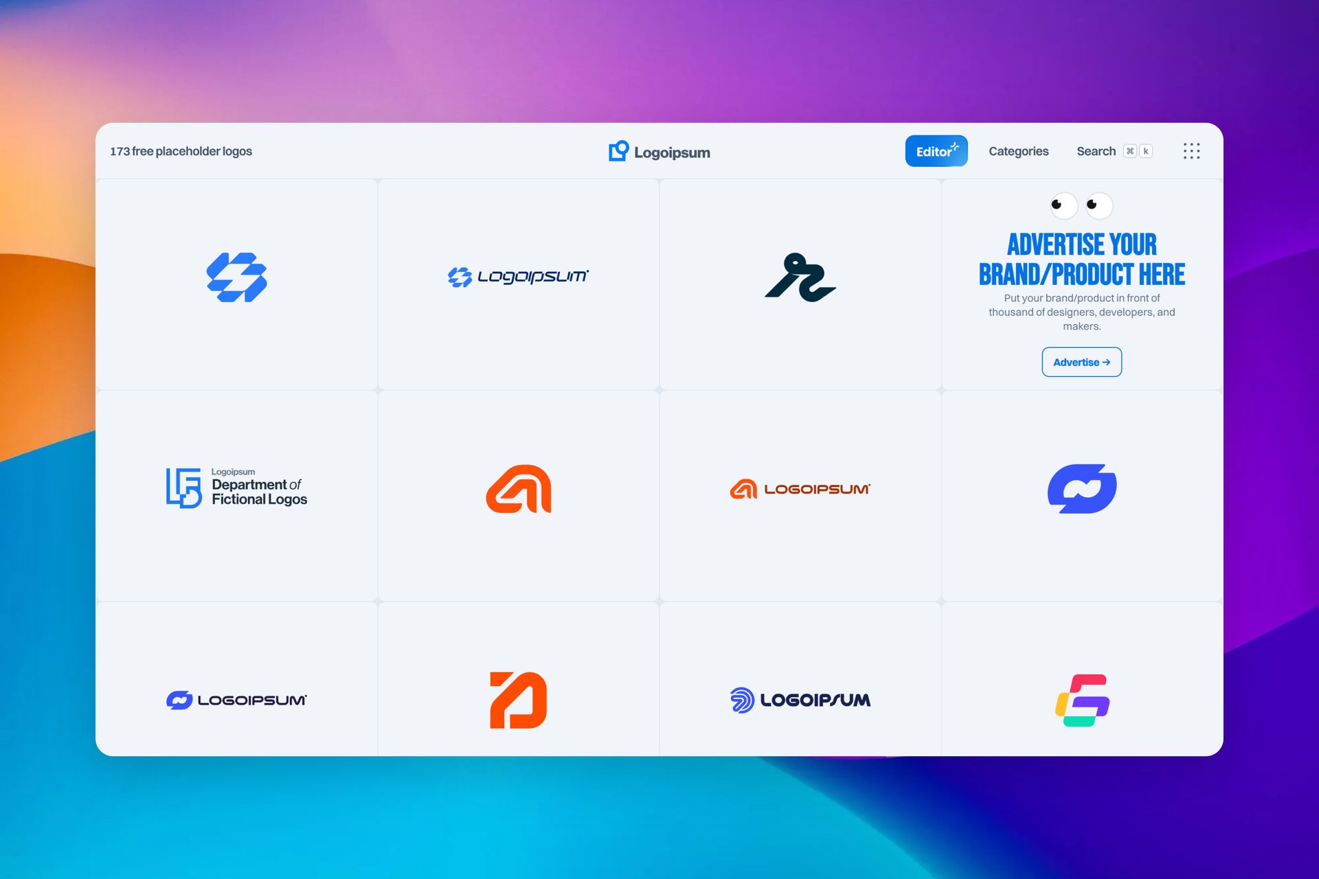 LogoIpsum is a placeholder logo generator designed for designers and developers who need quick, generic logos for mockups, wireframes, or early-stage design projects. It offers a variety of clean, minimalist logos that resemble real brands in layout and style but are entirely fictional. This allows you to present polished layouts without relying on actual logos, keeping the focus on structure and design rather than branding. Itβs especially useful in UI kits, templates, or landing page prototypes.