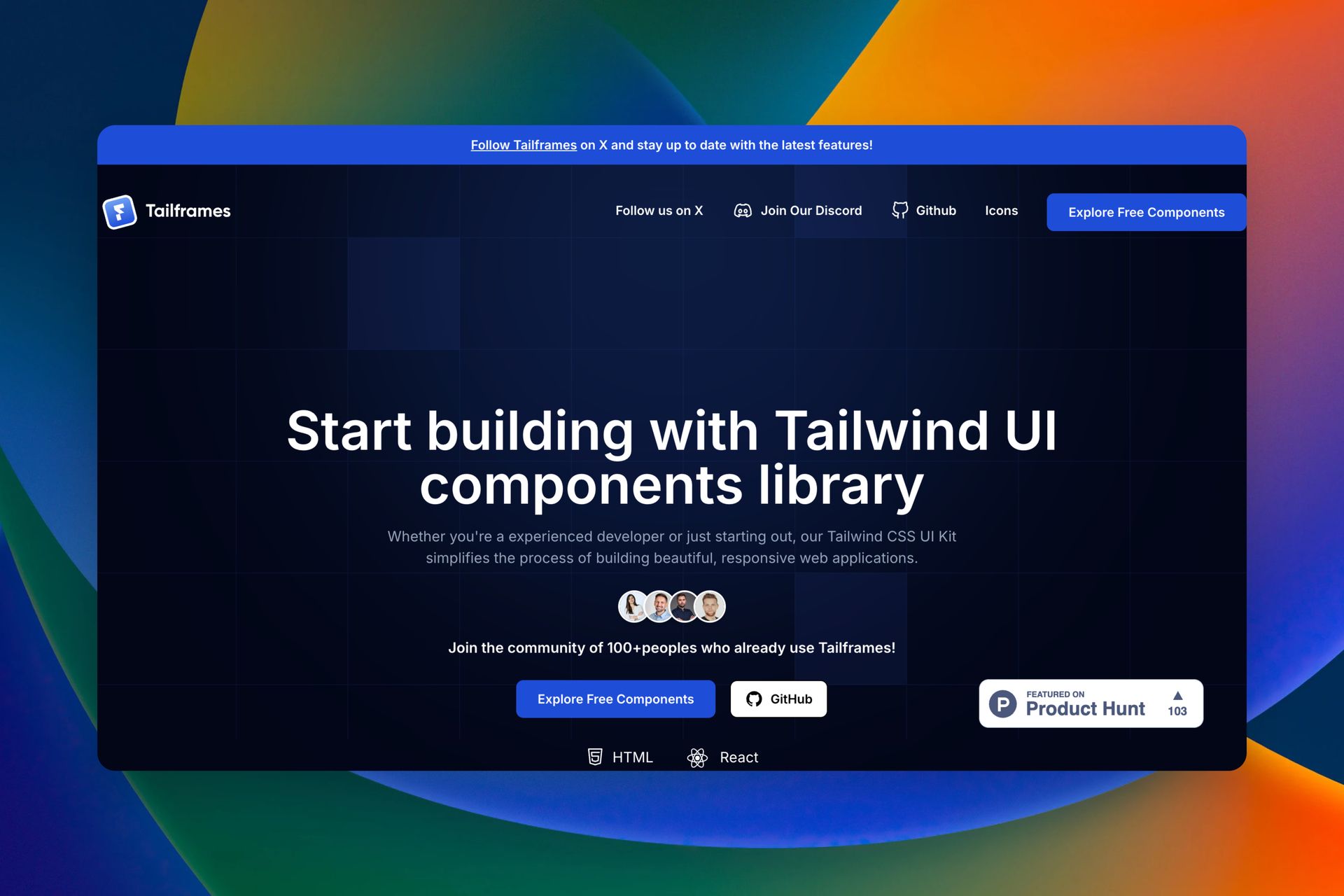 Tailframes is a Tailwind CSS UI kit offering a rich collection of ready-to-use, responsive components for building beautiful web interfaces fast. With pre-built elements like buttons, navigation, forms and modals β compatible with HTML and React β it lets developers prototype and ship polished UI without reinventing common layouts.